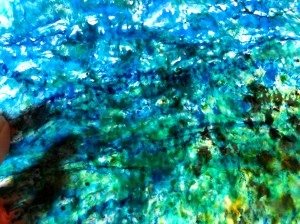 I ran a workshop at Ideas Test where adults and children made their own essence vessels. I was struck by how attractive the public found the bottle works, and how soothing it was to handle them and the fused panels.